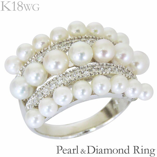 【10%OFF 12/3 20時より】パール リング k18 18k 18金 真珠 あこや本真珠 ダイヤモンド ホワイトゴールド 0.30ct パヴェ 複数珠 アコヤ あこや 冠婚葬祭 保証書付 普段使い カジュアル 人気 プレゼント ギフト ジュエリー ブラックフライデー