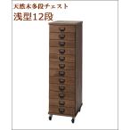 黒取手多段チェスト 12段 浅型引き出し 天然木 書類 収納 棚 チェスト 整理 ボックス 引き出し キャスター付き 16844