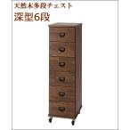 黒取手 多段チェスト 6段 深型引き出し 天然木 書類 収納 棚 チェスト 整理 ボックス 引き出し キャスター付き 16842