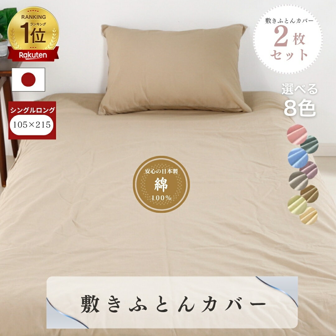【安心の日本製】2枚セット 敷布団カバー 105x215 シングルロング 綿100% コットン 国産 三河産 選べる 8色 布団カバー 敷き布団カバー 敷ふとんカバー 全開ファスナー 肌にやさしい 洗濯可 新生活