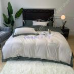 シルク調 布団カバー 4点セット ダブル 涼感寝具 夏用寝具 レーヨン素材 北欧 掛け布団カバー 敷布団カバー 枕カバー シングル 3点セット さらさら ひんやり