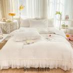 寝具4点セット シングル4点セット ダブル フリル 可愛い 可愛いレース 無地 布団カバー 敷布団カバー フラットシーツ ベッドスカート 枕カバー 洗える 通気性