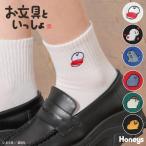 靴下 ソックス お文具といっしょ キャラクター 刺繍 ワンポイント ショート丈 綿混 リブ編み ガーリー レディース Honeys ハニーズ お文具といっしょ/靴下