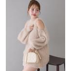 ワンピース 肩あきビジューニットミニワンピース
