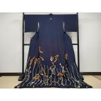 平和屋本店●極上 お引きずり・お引き摺り 色留袖 文字文 金彩 鬼しぼ縮緬 瑠璃紺色地 逸品 CYAA4989s6
