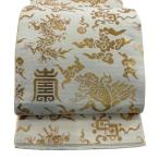 袋帯 逸品 龍村平蔵 落款あり 鳥 文字文 箔 クリーム 六通 正絹 中古