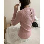 ニット セーター バックリボンデザインクルーネックリブニット レディース