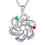 【並行輸入品】Lam Hub Fong 名前入りマザーズ 赤ちゃんの足 名前入りネックレス 1~6個の人工誕生石 妻用 新米ママ関係名ネックレス