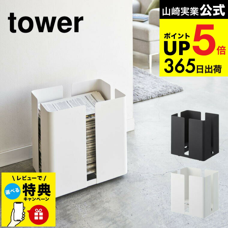 【特典付】[ キャスター付きニューズラック タワー ]山崎実業 tower 新聞ストッカー 新聞紙ストッカー キャスター付き 古紙 雑誌 収納 ラック 収納ケース 新聞 マガジンラック 新聞紙 新聞ラック 新聞入れ おしゃれ タワーシリーズ ホワイト ブラック 4763 4764 公式