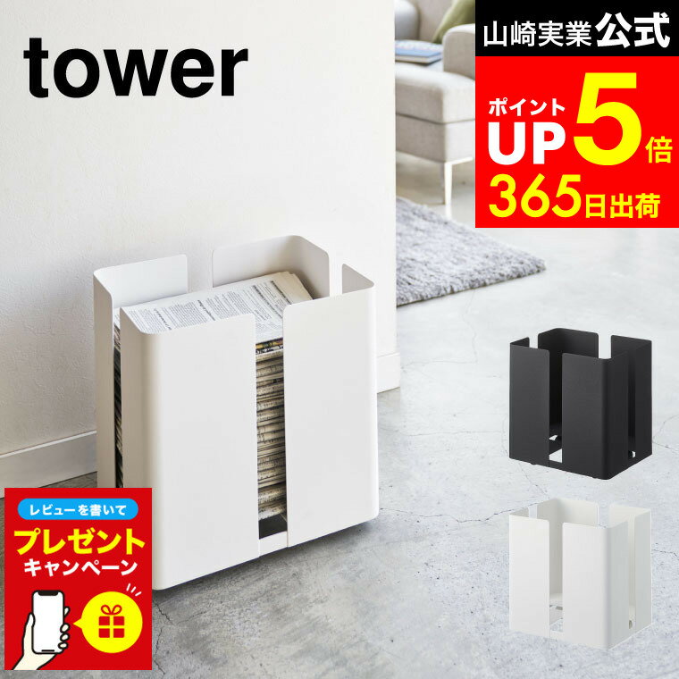 【LINEお友達で最大330円クーポン】【レビュー特典】[ キャスター付きニューズラック タワー ] 山崎実業 tower ホワイト ブラック 4763 4764 / 新聞ストッカー 新聞入れ 雑誌 古紙 ラック タワーシリーズ