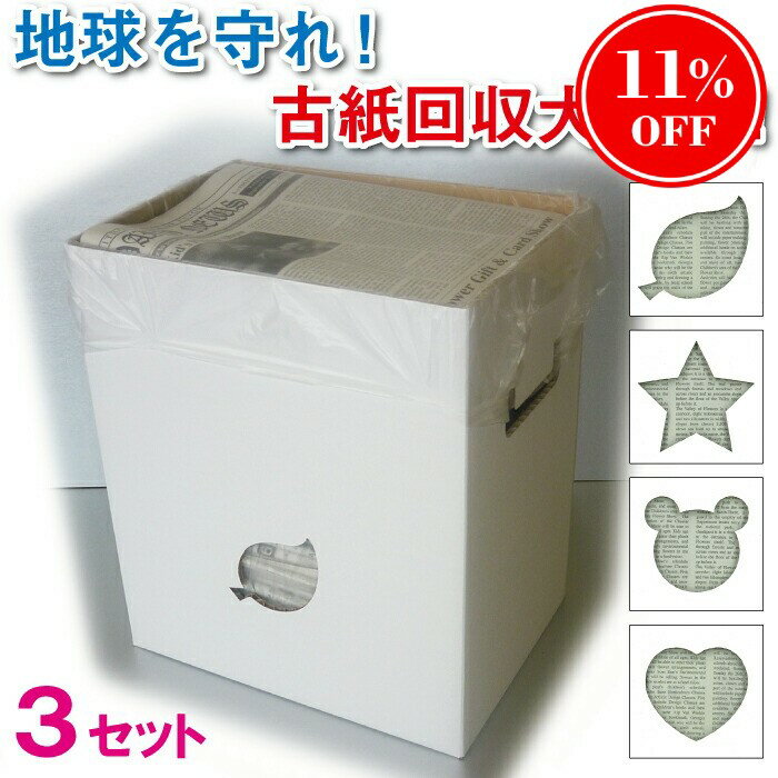 【古紙回収】 紐で古紙をしばれる箱「十文字しめ子」3個セット デザイン:リーフ スター ハート ベアー 古紙ストッカー ひも通し付 日本製 ホワイト 白 インテリア 便利 保管 雑誌よく...