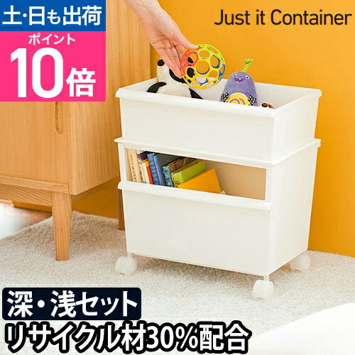 収納ボックス コンテナ ボックス ストッカー カラーボックス 収納ボックス 新聞ストッカー スタッキング フタなし 小物 おしゃれ 書類 白 収納 整理 おもちゃ 積み重ね [Just-it ジャストイット コンテナーワイド [浅・深] セット キャスター付き]