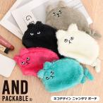 アンドパッカブル AND PACKABLE ポーチ 小物入れ 小さめ ブランド ニャンタマ 猫 ネコ ミニポーチ ボア レディース ファスナー 自立
