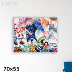 【手描き】デザイナーズアート ザパーン 70x55cm キャンバス 日本人形 招き猫 だるま 波 カラフル かっこいい 絵 アートパネル ポップ アスクイン