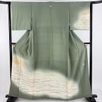 付下げ 身丈161cm 裄丈63cm S 袷 横山大観 落款あり 雲海 ぼかし 灰緑 正絹 名品 一つ紋 中古