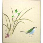 色紙 日本画 春蘭にウグイス 梅木信作 (真筆・新品)