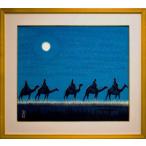 平山郁夫 「 月明 」 工芸複製画 絵画 日本画 版画 複製画 シルクロード ラクダ 夜 キャラバン 夜 タペストリー 布地 送料無料