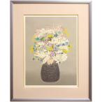 花 絵画 ススキ オシナエシ 桔梗 絵 和風 日本画 インテリア プレゼント コレクション 新築祝い 開店祝い 藤原郁子 新秋 額付き