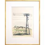 香月泰男「 郊外農村 」( カサブランカ ) 石版画集「 モロッコ 」より 石版画 ( リトグラフ ) 版画 絵画 かづき 動物 電線 外国の風景 送料無料