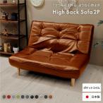 (タイムセール中) ハイバックソファー 2人掛け オットマン付き おしゃれ 121cm PVC生地 日本製