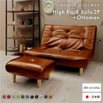 (タイムセール中) ハイバックソファー 2人掛け+オットマン付き おしゃれ ヴィンテージPVC生地 リクライニング 日本製