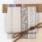 名古屋帯 正絹 博多織 オフ白 茶 更紗献上模様 全通柄 日本製 紋織 本筑博多織 洒落帯 協和工場