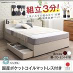 (タイムセール中) シングルベッド マットレス付き 国産ポケットコイル 収納付き