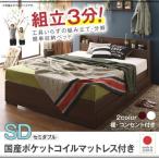 (タイムセール中) セミダブルベッド マットレス付き 国産ポケットコイル 収納付き
