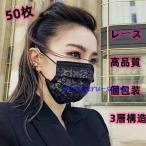 マスク 不織布 レース 50枚 不織布マスク 小顔マスク 使い捨て 個包装 高品質 黒 3層構造 蒸れない 母の日 無地 花粉対策 飛沫防止 小顔効果 可愛い 不織布マス