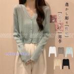 カーディガン レディース UVカット透かし彫り 日焼け止め ショート丈 無地 シンプル 春 春服 トップス 長袖 羽織り 薄手 冷房対策 サマー