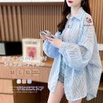 シアーシャツ レディース 夏 ストライプ シャツ 長袖 カーディガン シースルー サマーカーディガン ロング ブラウス チュニック UV対策 日焼け止め 紫外線対策