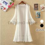 レースカーディガン 冷房対策 ロングカーディガン 日焼け止め服 カーディガン レディース 透かし雕り
