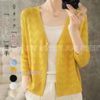 カーディガン レディース UVカット透かし彫り 日焼け止め ショート丈 無地 シンプル 春 春服 トップス 長袖 羽織り 薄手 冷房対策 サマー