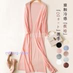 カーディガン レディース UVカット透かし 接触冷感 涼しい 日焼け止め ロング丈 無地 シンプル 春夏服 トップス 長袖 羽織り 薄手 冷房対策