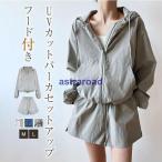 爆買 セットアップ レディース パーカー カーディガン UV対策 紫外線対策 UVカット ジップアップ 薄手 アウト ラッシュガード ワイドパンツ 冷房対策 長袖 夏