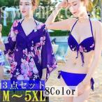レディース水着ビキニワンピースセット3点セット花柄ボタニカル柄大きいサイズ日焼け止め紫外線対策リゾートMXL3XL4XL5XL