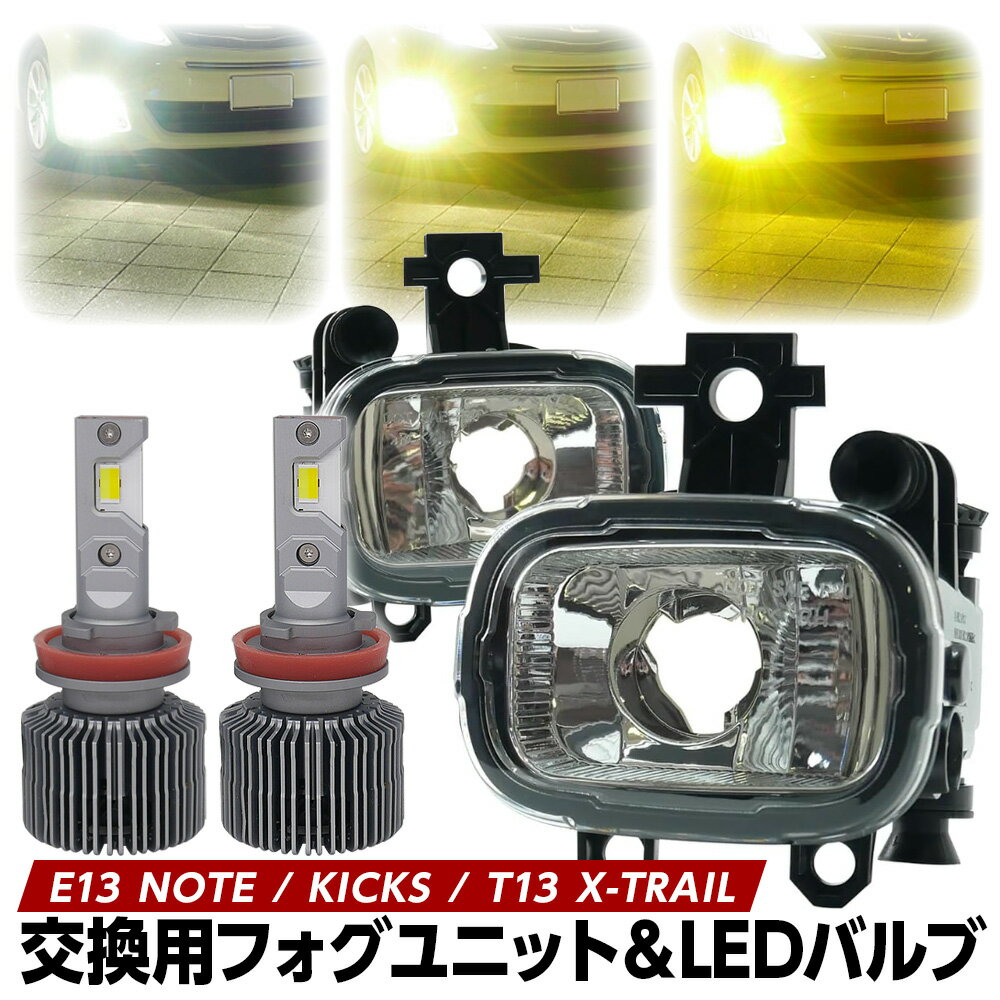 【15%OFF!】 ノート E13 キックス エクストレイル T33 フォグランプ ユニット+ LEDバルブセット 2色切替 ホワイト ライムイエロー カラーチェンジ 左右セット LED H11 フォグ ユニット 純正LEDフォグを社外品に 交換用 日産 NOTE KICKS X-TRAIL