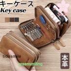 キーケース スマートキーケース ダブルファスナー 本革 メンズ レディース ミニ財布 レザー キーホルダー つ 鍵 同時収納 大容量 上品