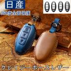 日産対応 キーケース 日産 スマート キーケース Nissan キーカバー キーホルダー 高級 本革 柔らかい オシャレセレナ エルグランド スカイライン マーチ キューブ ノート エクストレイル シルフィ ティーダ ニッサン リモコンキー カバー クレージホースレザー