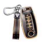 【並行輸入品】WSAuto 日産キーフォブカバー 5ボタン TPU保護 カーキーケース シェル ファッションゴールドキラキラキーホルダー 日産ア