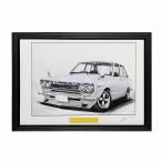 日産 NISSAN 510ブルーバード【鉛筆画】名車 旧車 イラスト A4サイズ 額付き サイン入り