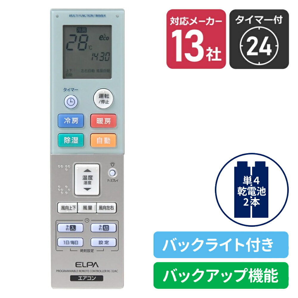 ≪衝撃の99%OFF★12/1先着クーポン限定≫ 朝日電器 タイマー付きエアコンリモコン RC-32AC エアコン リモコン 汎用 エアコン用リモコン 各社共通 国内メーカー 対応 紛失 故障 代用品 予備 替え 冷房 暖房 ルームエアコン ダイキン シャープ パナソニック 日立 東芝