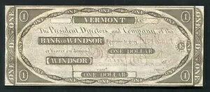 1838年 1ドル ウィンザー銀行バーモント州旧紙幣 UNC (N)