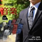 ネクタイ シルク 西陣織 音楽 音符 5線譜 楽譜 日本製 シルク100% ギフト プレゼント 発表会 コンクール 就職祝 誕生日 昇進祝い 敬老の日
