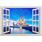 絵画風 壁紙ポスター (はがせるシール式) -窓の景色- ディズニーワールドの景色 星空とシンデレラ城 フロリダ 【扉なし窓仕様】 ウォールステッカー ディズニー キャラクロ DNW-010NA1 (A1版 830mm×585mm) <日本製> お風呂ポスター