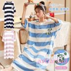 ネグリジェ 短袖 レディース マタニティ パジャマ ワンピース ソフトキルト素材 ボーダー柄 春 秋 夏 産後 入院 ルームウェア 可愛い ゆったり 体型カバー