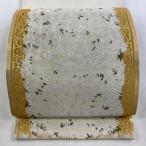 袋帯 逸品 山口美術織物 落款あり ますいわ屋 献上春菊文 草花 唐織 金糸 白 お太鼓柄 正絹 中古