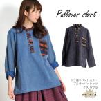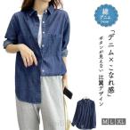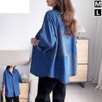 レディース 綿 デニムシャツ ウエスタンシャツ ビックシャツ グラデーション 段染めデニム シャツ ロング丈 綿デニム コットン 長袖 ゆったりサイズ ドルマン