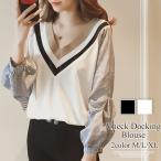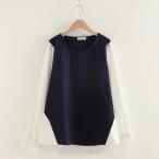 ツートーンカラー 切替 ブラウス レディース 綿 プルオーバー 長袖 2色切替 綿織 コットン ポプリン シンプルでおしゃれ ゆったりズ 袖口シャーリング ボ