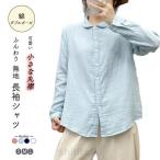 ダブルガーゼ シャツ 綿シャツ レディース 丸襟 綿 無地 ブラウス 長袖 シャツ 2重ガーゼ 綿 コットン 通気性 膨らみ 無地 ホワイト ブラック グリーン ネイビ
